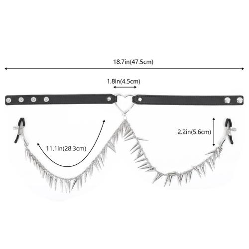 Leather Collar with Nipplle Clamp Spikes Chains