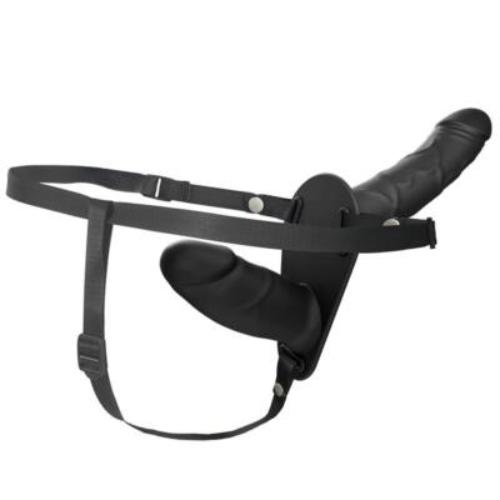 Allows dual penis simultaneous penetration for both, enhancing the shared experience for lesbian couples.