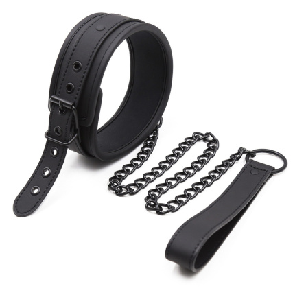 Premium Black Bondage Collar with Leash