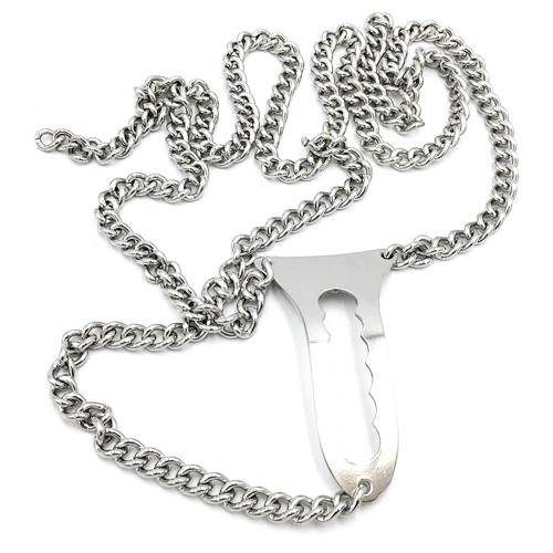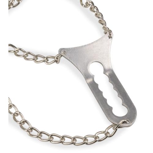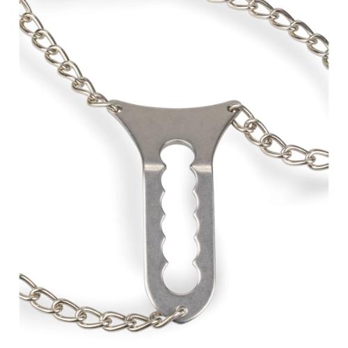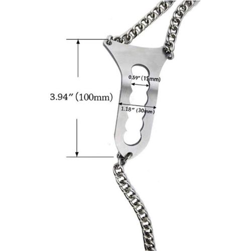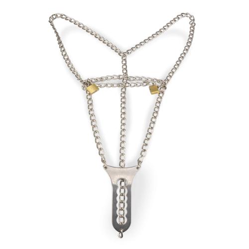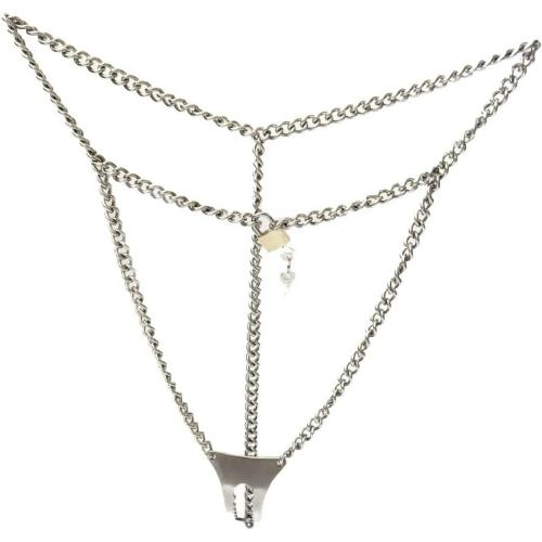 Αυτή η μοναδική γυναικεία ζώνη αγνότητας είναι κατασκευασμένη εξ ολοκλήρου από ατσάλινες αλυσίδες και μια αρκετά εντυπωσιακή και αισθησιακά αναζωογονητική ατσάλινη πλάκα. Είναι τόσο εύκολη στην εφαρμογή που θα την έχετε κλειδωμένη αμέσως. Αυτό σημαίνει ότι η καρδιά και το φύλο της ανήκουν σε εσάς! Οι αλυσίδες είναι όλες ρυθμιζόμενες τραβώντας τες στην επιθυμητή εφαρμογή και κλειδώνοντας μπροστά με τα δύο λουκέτα, που περιλαμβάνονται.